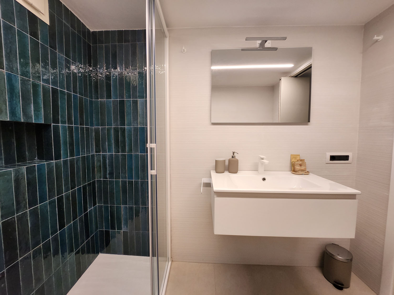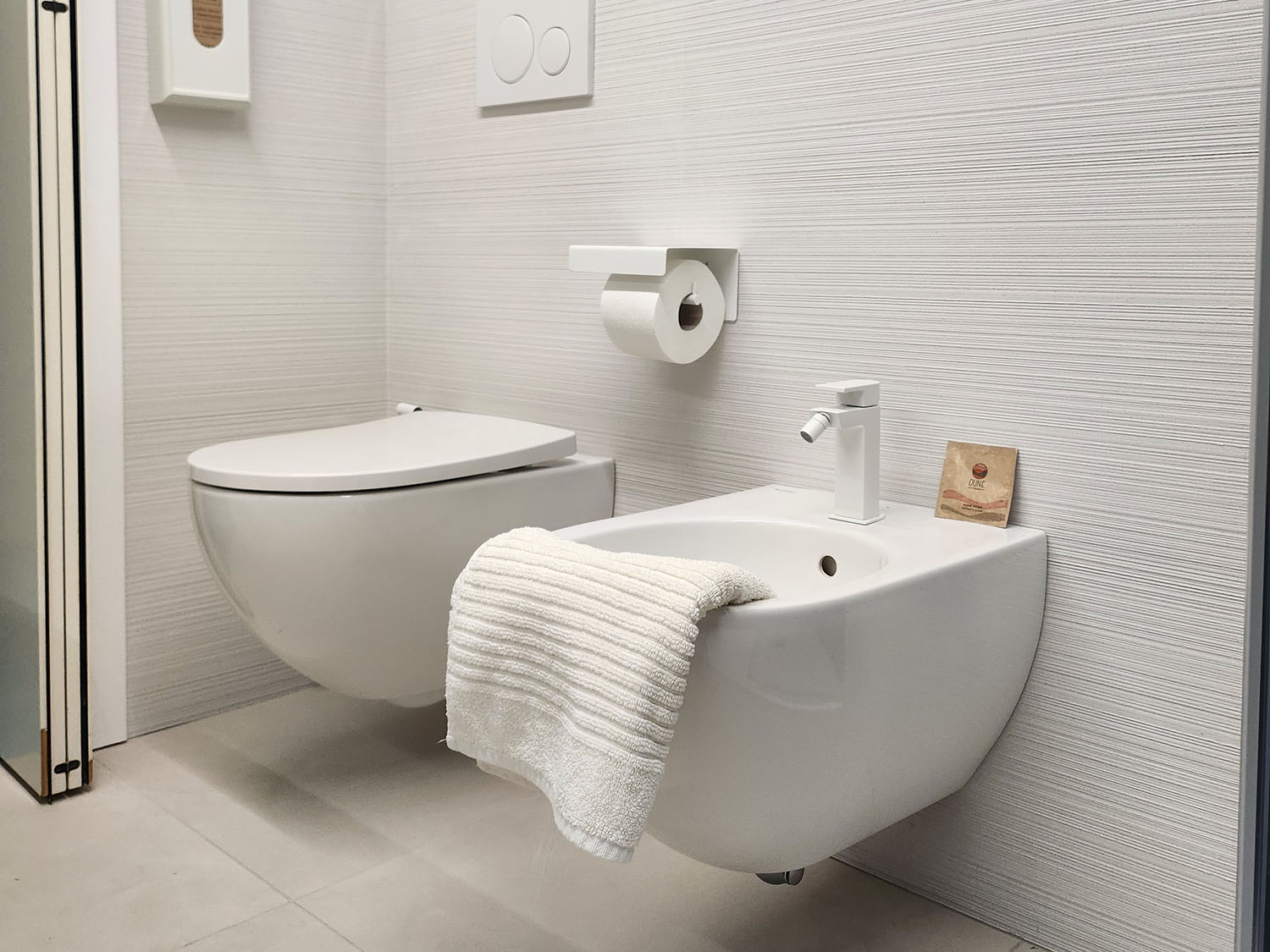 Il bagno in suite, moderno e luminoso, è un’oasi di benessere: un’ampia doccia con acqua calda, servizi igienici, lavandino e bidet, insieme a soffici asciugamani, prodotti di cortesia e un asciugacapelli, ti garantiscono tutto ciò che serve per un soggiorno senza pensieri.